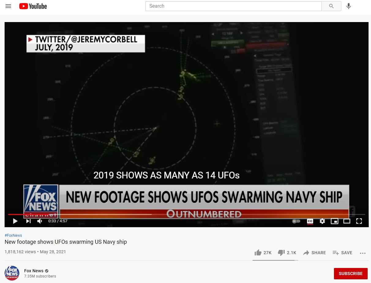 The 60 Minutes story didn’t break any new ground or make any new disclosures, but it did bring the second pilot from the now-famous tic-tac incident in front of the camera, raising the credibility of that story. More importantly, the story shoved the entire discussion into primetime mainstream media credibility. This link has the story with a transcript. You can watch the whole segment below: